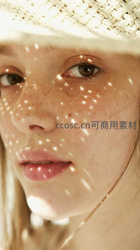 草帽光影洒落的少女面部特写