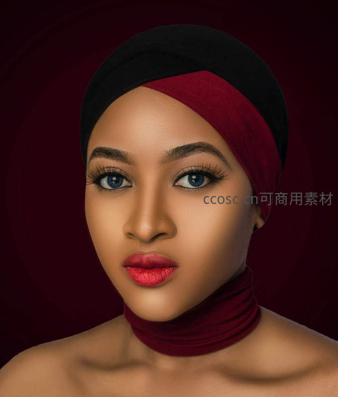 红黑头巾下的自信美人肖像