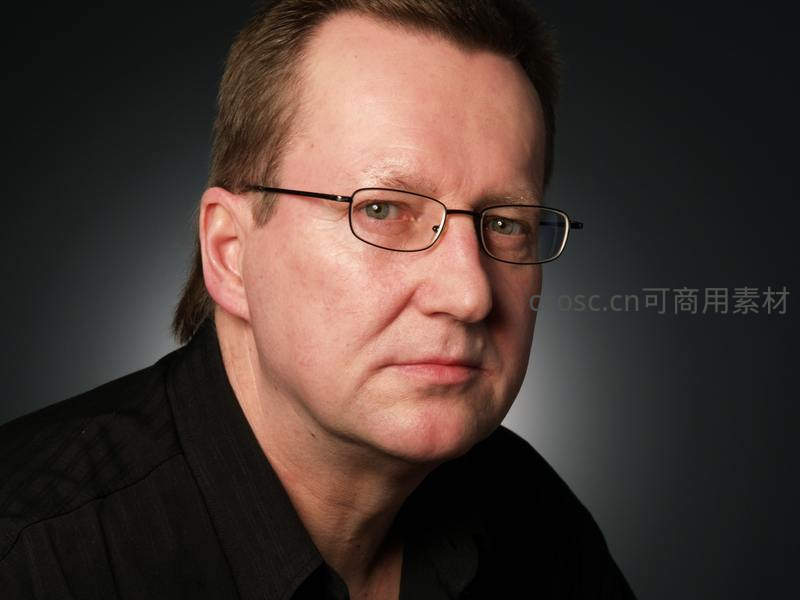 一位戴着眼镜的中年男士在深色背景下凝视镜头,神情专注而沉静,展现出成熟稳重的气质与专业形象。