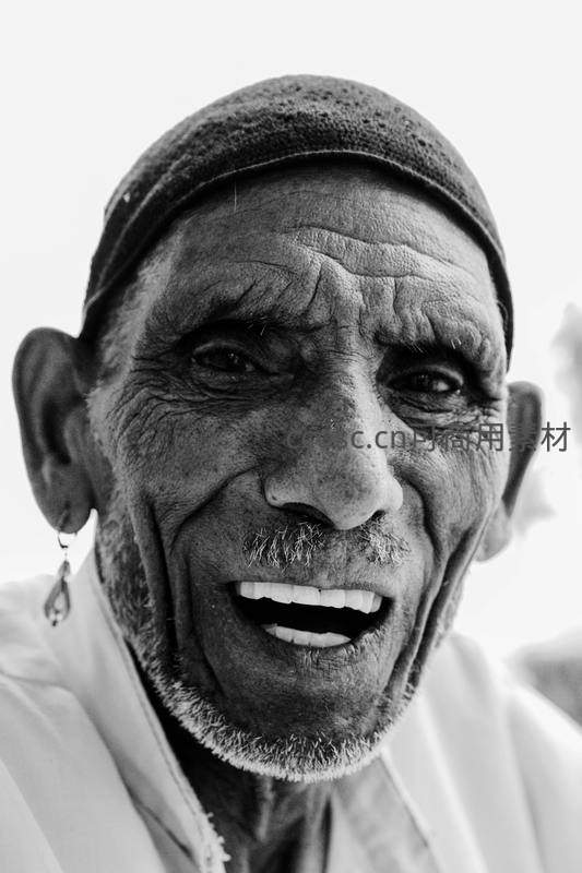 一位面带灿烂笑容的年长男性,脸上布满岁月的沟壑,头戴传统帽饰,眼神中充满慈祥与活力,展现生命坚韧之美。