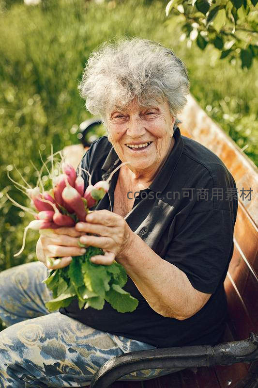 丰收喜悦,手捧新鲜萝卜的奶奶