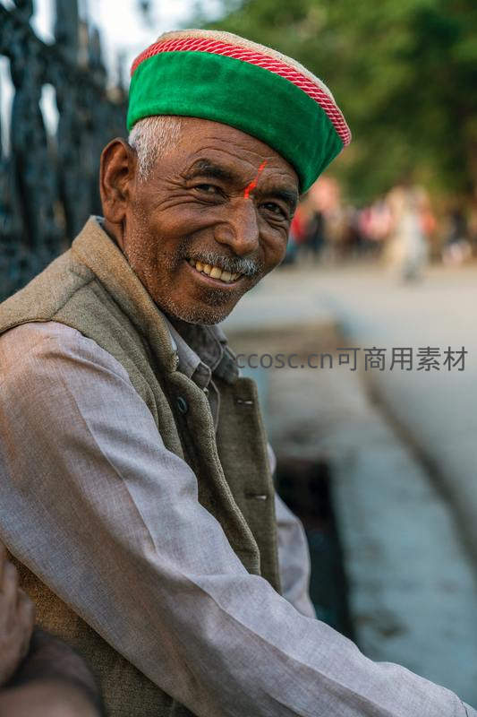 温暖笑容:戴绿帽的印度老者