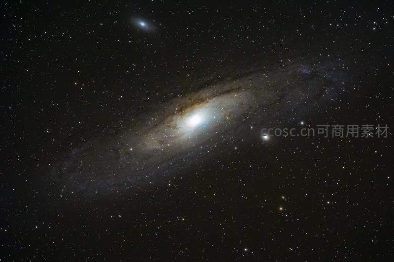 旋涡星系仙女座在黑暗宇宙中闪耀
