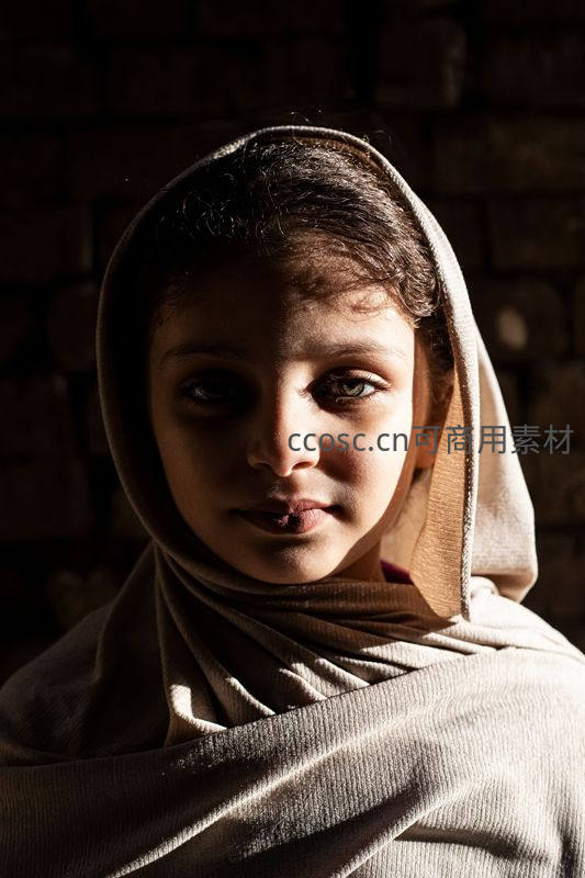 头巾女孩侧脸沐浴暖阳光影