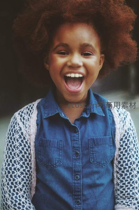 卷发女孩开怀大笑瞬间
