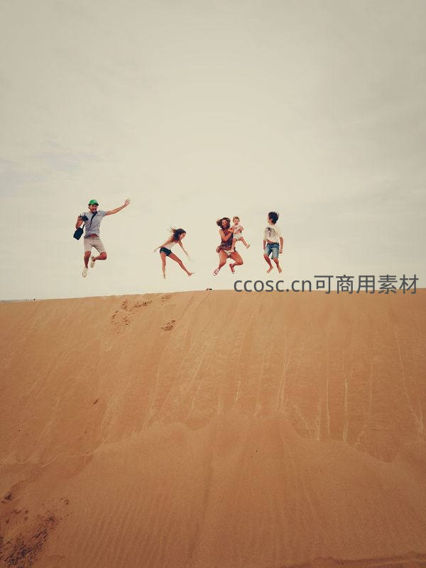 家人齐跃沙丘共享欢乐瞬间