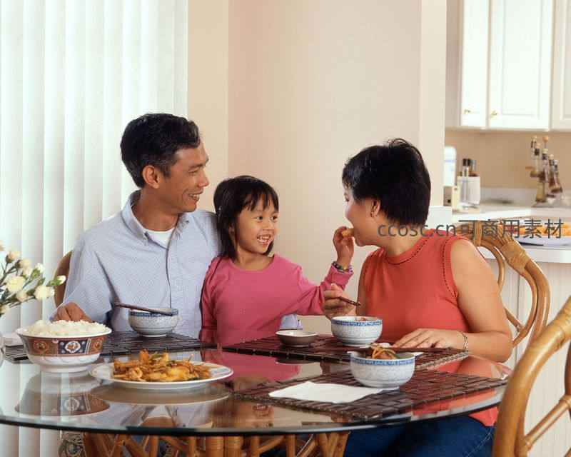 一家三口围坐在餐桌旁,享受丰盛的家常饭菜,父母与孩子互动欢笑,营造出温暖和谐的家庭氛围。