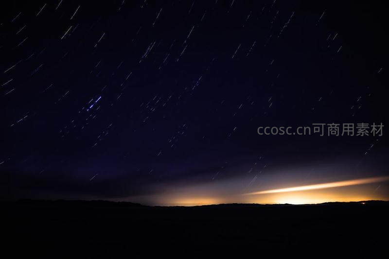 星轨划过夜空,远方地平线透出微光