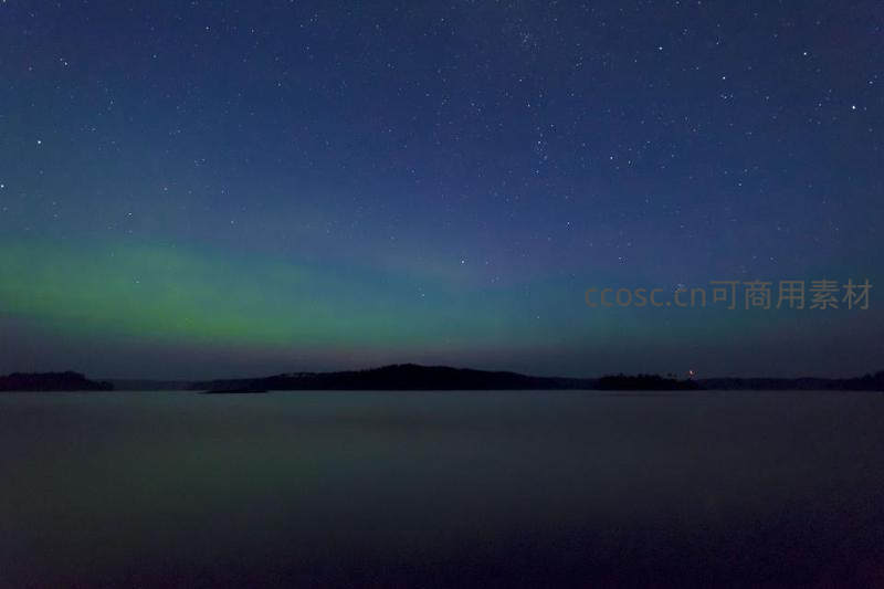 幽绿极光在宁静湖面与璀璨星河之间轻柔舞动,构成一幅如梦似幻、令人心醉的自然奇景。