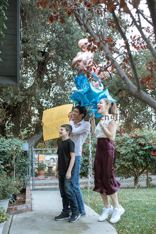 全家庆祝怀孕喜讯,气球标语传递幸福瞬间