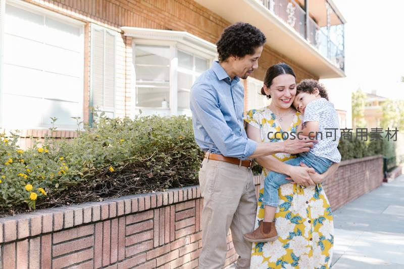 街角温情:父母怀抱熟睡孩子共享宁静时刻