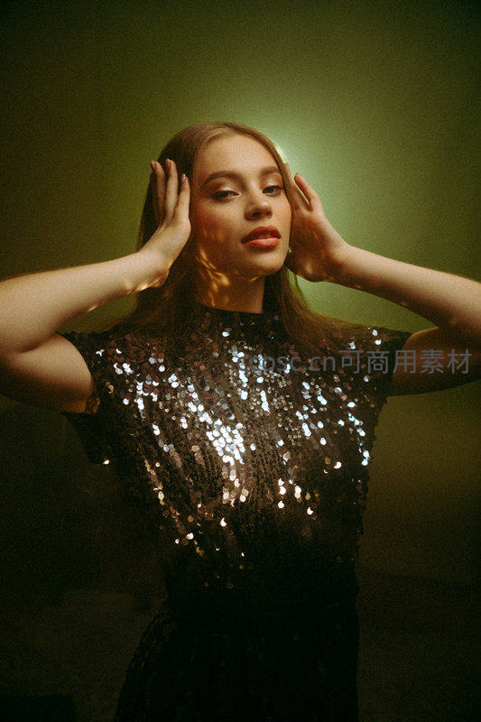 闪亮礼服女子光影特写