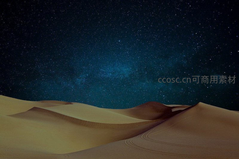 沙漠沙丘上银河横跨天际