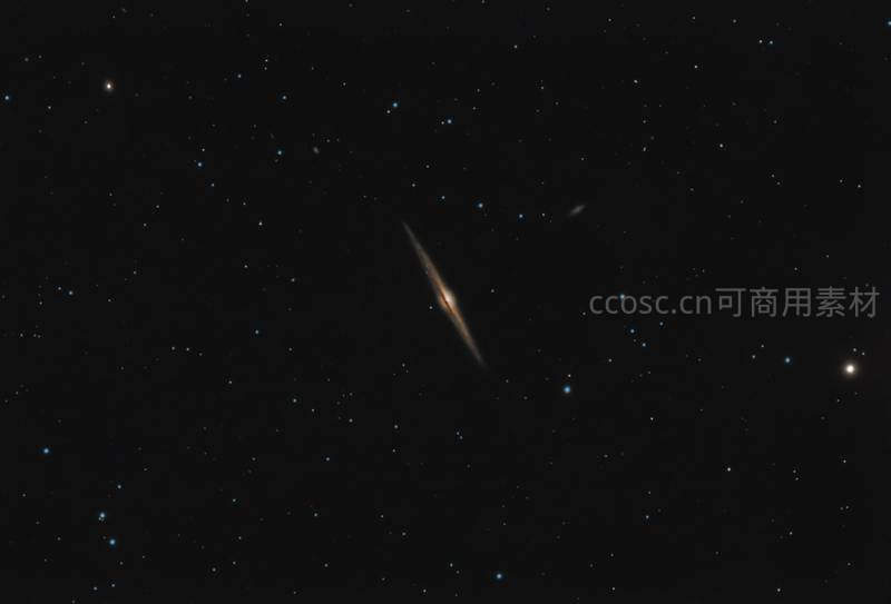 从侧面观察的星系宛如一把利刃,其扁平盘面和中央隆起在黑暗背景中勾勒出清晰的宇宙结构。
