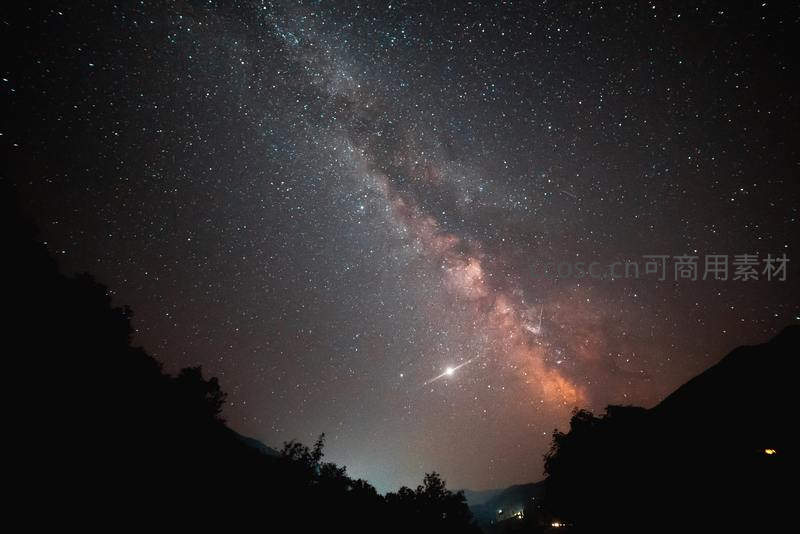银河倾泻夜空,流星划破寂静