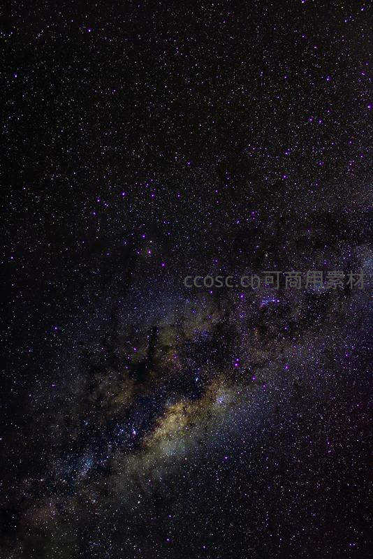 深邃夜空中弥漫着紫色星辉,银河的暗带如墨迹般蜿蜒其中,无数星辰闪烁,营造出一种神秘而宁静的宇宙氛围。