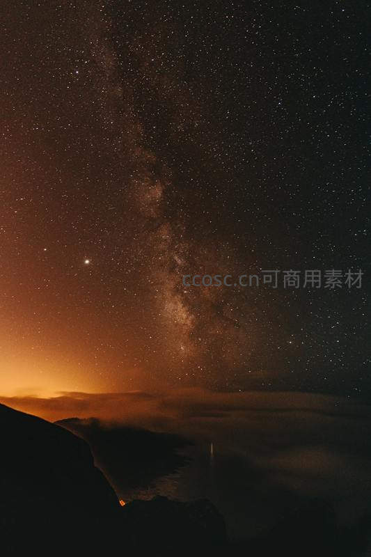 从高处俯瞰,云海在脚下翻涌,头顶是倾泻而下的银河,天地之间充满宁静而梦幻的氛围。