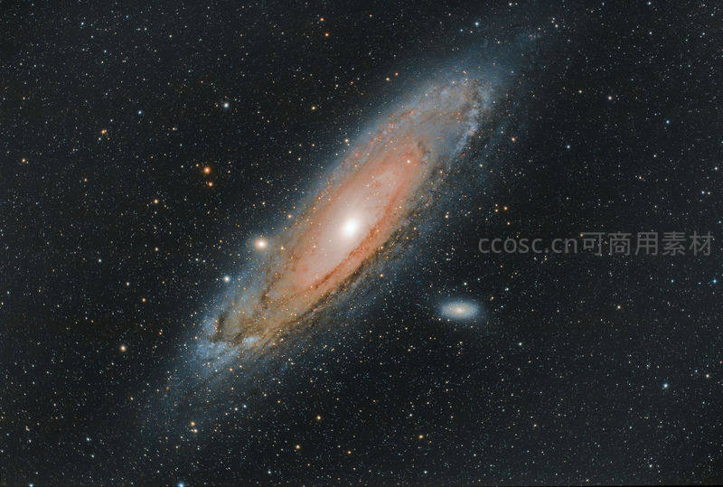 一个宏伟的旋涡星系在漆黑的宇宙背景中清晰可见,其螺旋臂由恒星和尘埃构成,色彩斑斓。