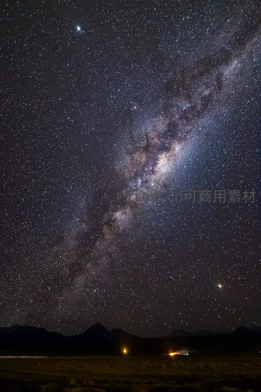 旷野星空下银河斜跨天幕