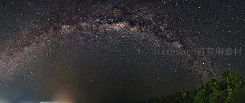 一道完整的银河拱门高悬夜空,下方是茂密的热带丛林剪影,构成一幅天地交融的奇幻自然画卷。