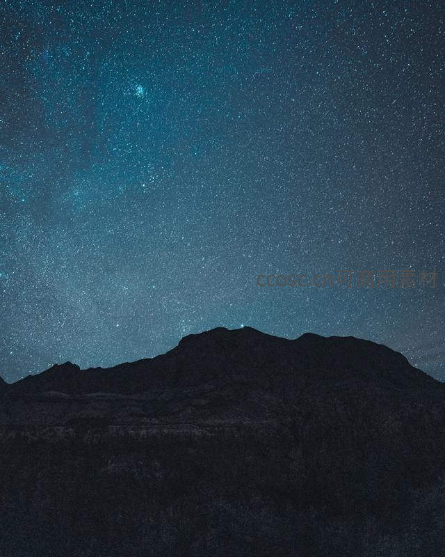 连绵山峰在深蓝色星空中勾勒出黑色轮廓,无数星辰点缀其上,营造出宁静而庄严的自然画卷。