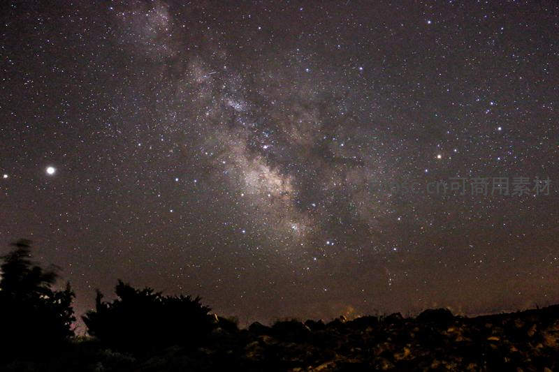 山峦之上银河倾泻如瀑
