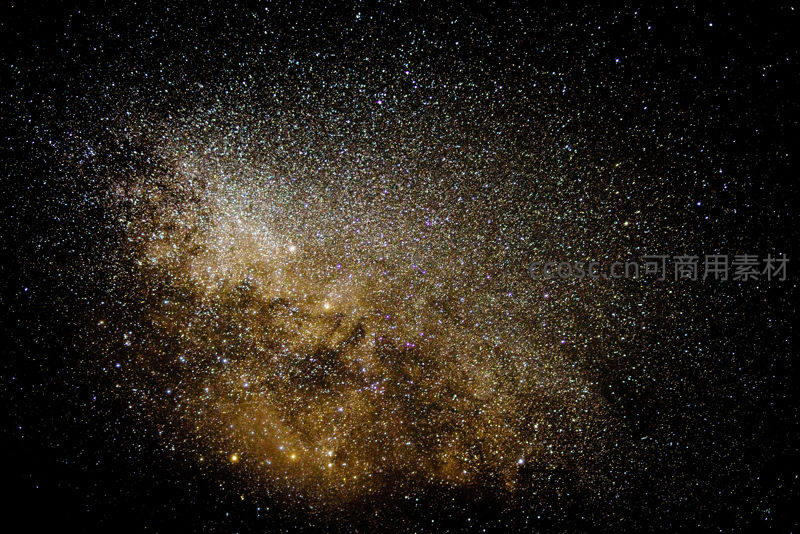 一片金黄色调的星云在黑暗背景中铺展开来,宛如宇宙中的沙瀑倾泻,点缀着无数细小闪亮的恒星。