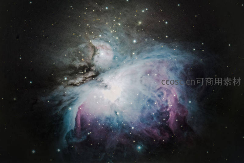 猎户座大星云以其绚烂的蓝紫白三色云气闻名,是新生恒星诞生的摇篮,充满神秘与活力。