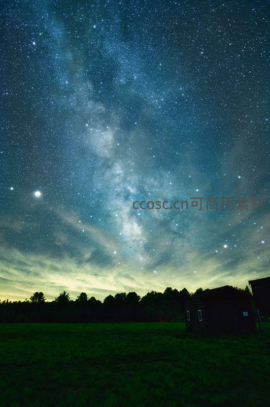 绿野与木屋静卧大地,头顶银河如桥,连接着人间与宇宙的浪漫想象。