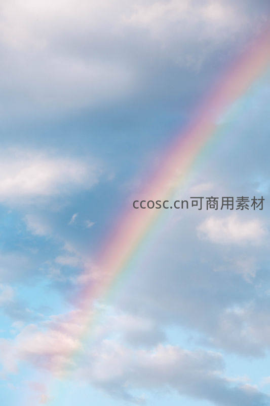 一道柔和的彩虹斜挂于蓝天白云之间,色彩由浓转淡,仿佛天空的温柔笔触,为平凡的午后增添一抹诗意与宁静。