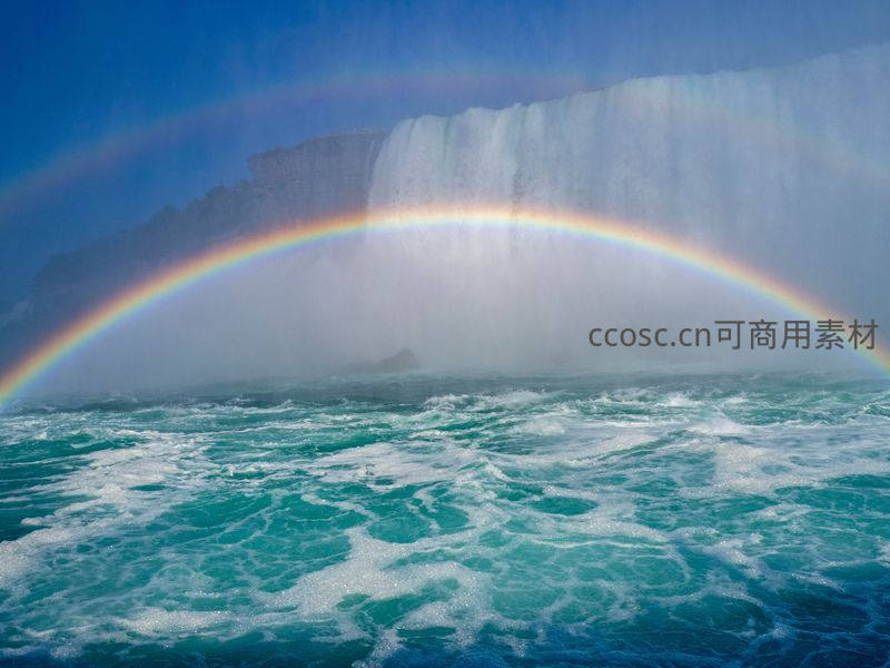 一道绚丽的双彩虹横跨在气势磅礴的瀑布之上,水花飞溅,云雾弥漫,构成一幅震撼人心的自然奇观。