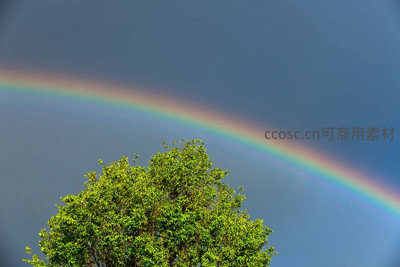 树冠之上彩虹横跨,晴空万里生机勃勃