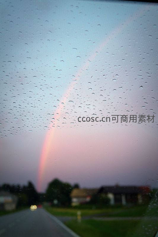 雨滴窗前的朦胧彩虹,归家路上的温柔邂逅