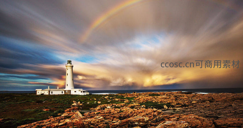 灯塔旁彩虹守护海岸奇景