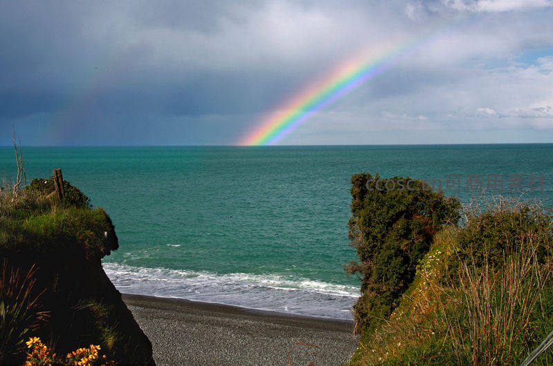 海岸悬崖上的海天彩虹