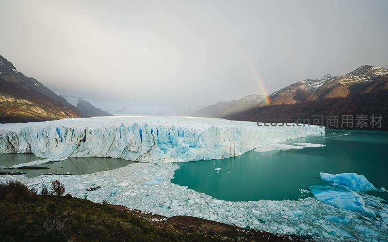 冰川湖泊上空悬挂彩虹