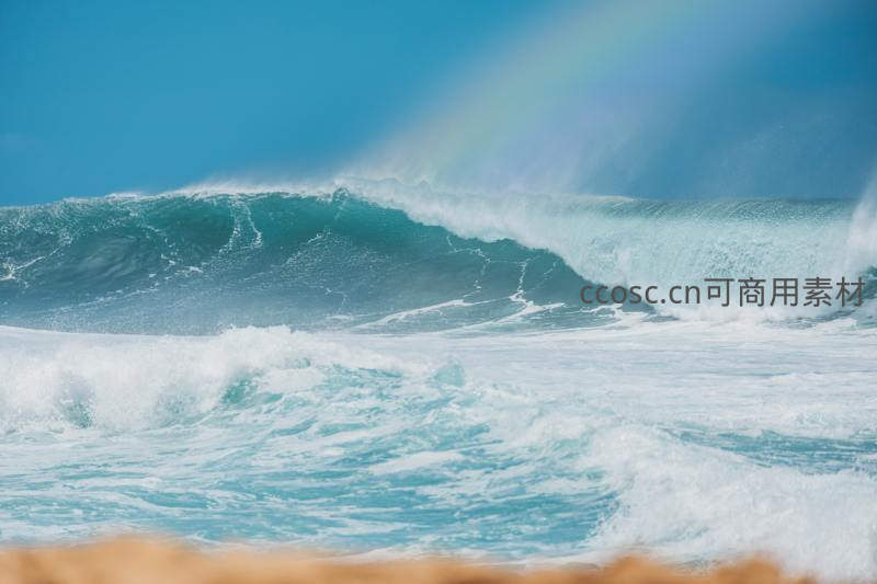 巨浪翻涌彩虹悬于碧海之上