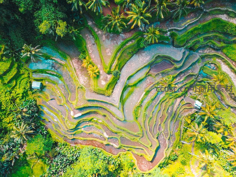 从高空俯瞰,层层叠叠的梯田如同大地的指纹,碧绿的稻苗与清澈的水渠交织,构成一幅壮丽的生态画卷。