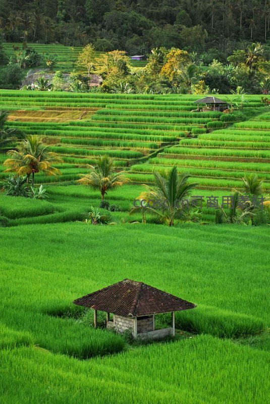 梯田绿浪中的茅草亭