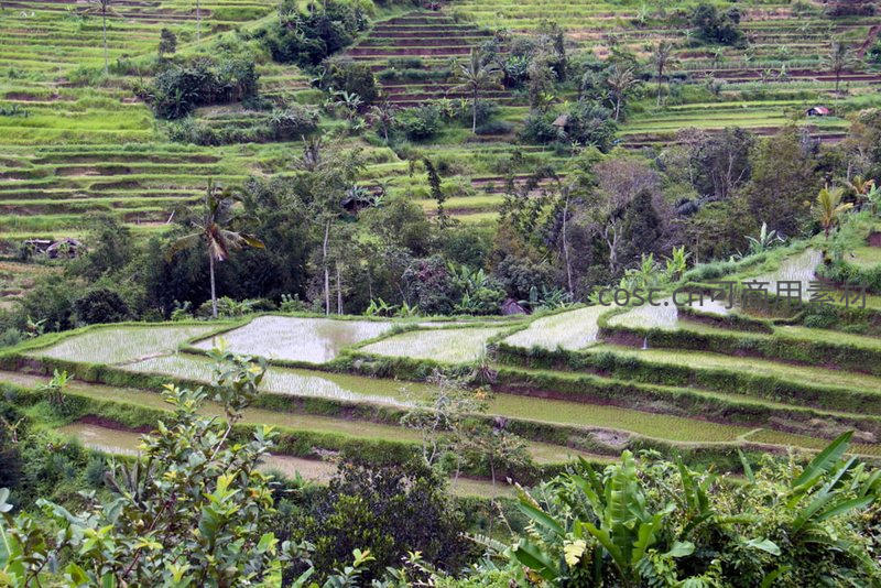 依山而建的梯田如音符般起伏,绿意盎然,与山林融为一体,谱写出一曲壮丽而宁静的大地交响乐章。