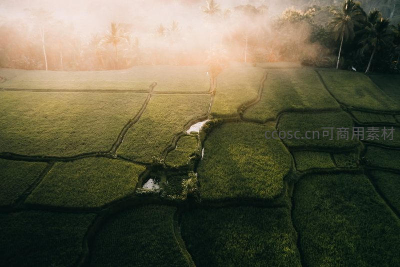 薄雾笼罩的梯田在晨光中若隐若现,水面倒映着霞光,营造出如仙境般静谧梦幻的氛围。