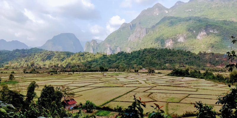奇特的峰林地貌环抱着广袤的稻田,零星的村舍散落其中,构成了一幅人与自然和谐共处的生态田园图景。