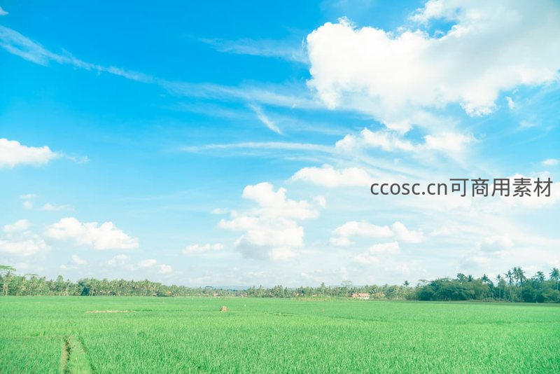 碧空如洗绿野无垠,云卷云舒稻田静美