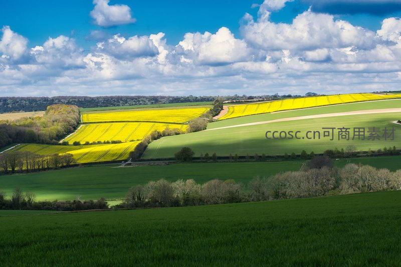 金黄油菜花海与翠绿田野的壮丽画卷