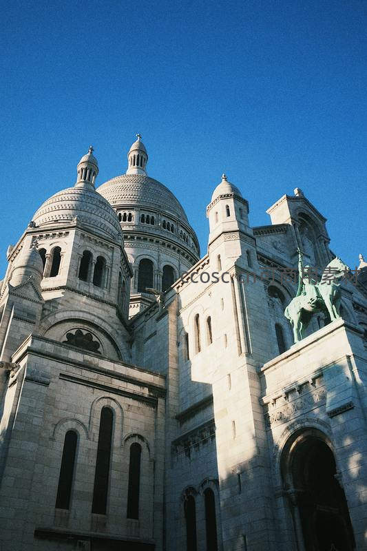 宏伟的圣心大教堂在晴朗蓝天的映衬下更显庄重,其标志性的圆顶与骑士雕像细节清晰,尽显古典建筑之美。