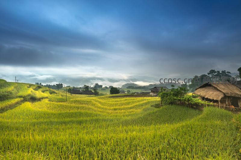 云雾缭绕处,金黄稻浪翻