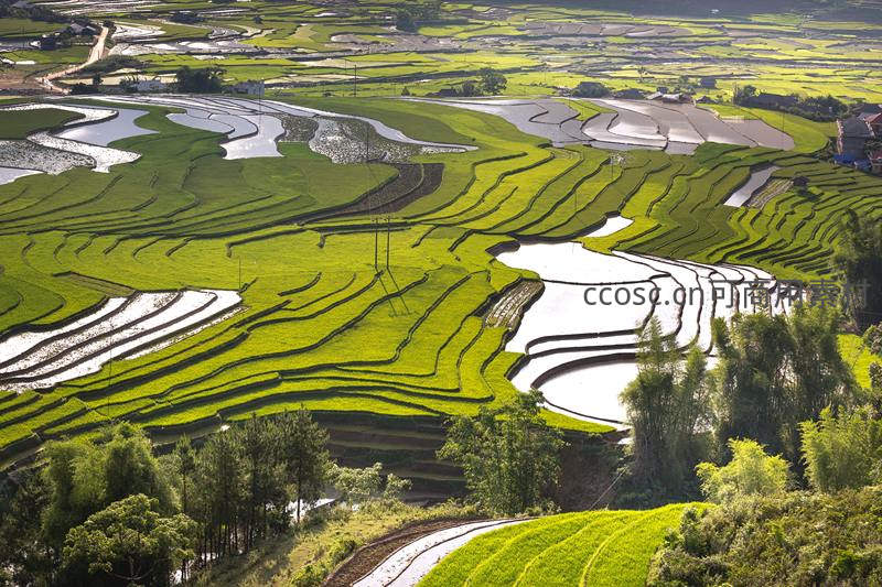 层叠梯田如绿绸带铺展山间