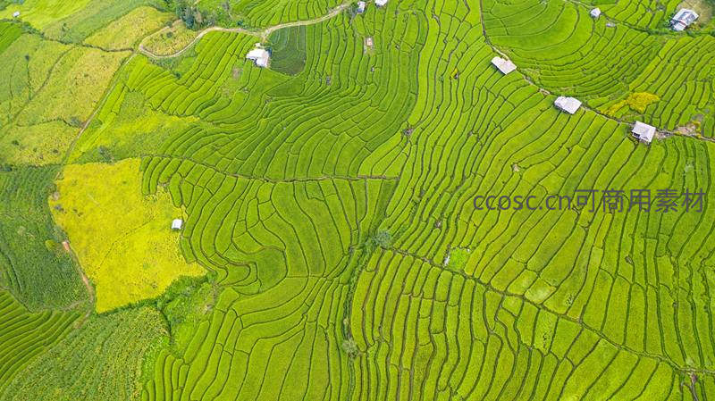 上帝视角下的绿色琴键,梯田如音符跃动山野