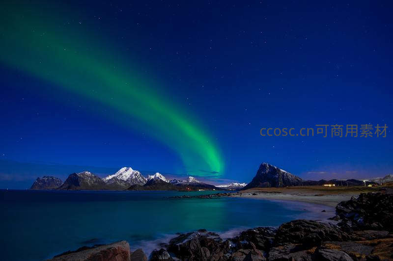 极光舞动雪山海岸夜空