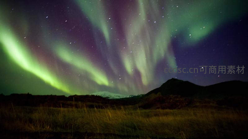 草原仰望极光,紫绿交织苍穹